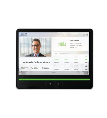 FaceKiosk-H10A elevates the corporate meeting management by offering dual authentication mode with facial authentication and card verification. Also, the terminal is equipped with an intuitive 10.1 inches LCD color touch screen and LED indicators that streamline meeting schedule and room status tracking.